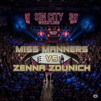 Lunam: And what a way to kick things off tonight, Belinda! Our opening contest features SCW’s own ‘Messiah of Manners,’ Miss Manners, stepping back into the spotlight against a very intriguing debut. For the first time in an SCW ring, we’ll see Zenna Zdunich, the sister of former World Bombshell Champion Seleana Zdunich. Zenna’s got the pedigree, she’s got the name, and everyone’s curious to see how she handles herself under the bright lights here in Long Beach. But Miss Manners isn’t about to roll out the welcome mat. She’s polished, disciplined, and eager to show this Zdunich that manners make the match!