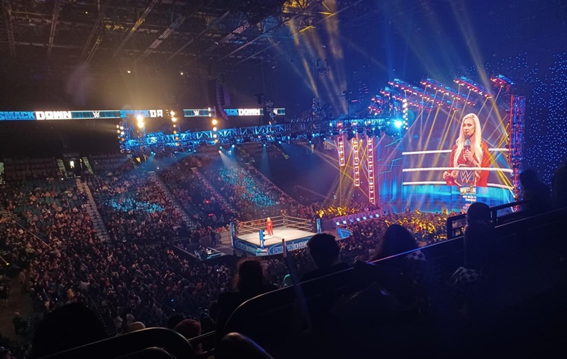 The crowd explodes yet again, some fans already singing and clapping along to nothing in particular, just riding the energy. The music at ringside begins to swell, the arena lights start to dance and flutter across the fans, and the cameras close in on Amanda’s smiling face as she readies herself to turn the Mullett Arena into her stage.