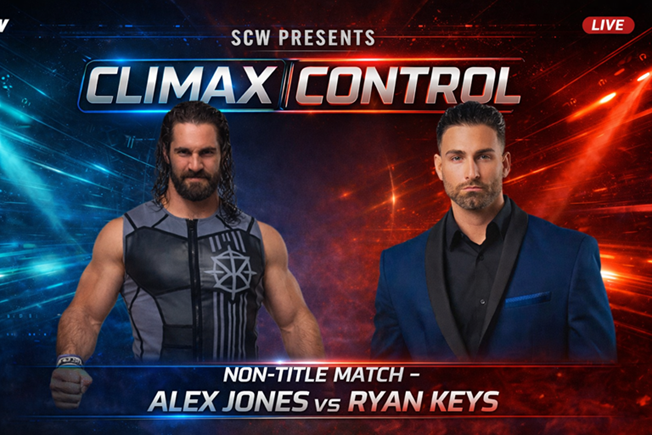 Simone: And still to come tonight, Reno, we’re talking about a real measuring-stick match because the Party Boy of SCW, Ryan Keys, has his eyes set firmly on championship glory at Blaze of Glory XV. But if he wants to prove he’s ready for that spotlight, he has to get through a very real problem first: the brand new Internet Champion, Alex Jones, in non-title action. Jones has been riding that title win like a personal victory lap, and he’s been loud about it, especially with the ongoing rivalry still burning between Alex and the former champion, Miles Kasey. That bad blood hasn’t cooled off for a second, and you can bet it’s hovering over everything Jones does. Ryan Keys wants momentum, Jones wants to prove he’s the standard now, and with Miles Kasey’s shadow still hanging over that championship scene, this one could get explosive fast.